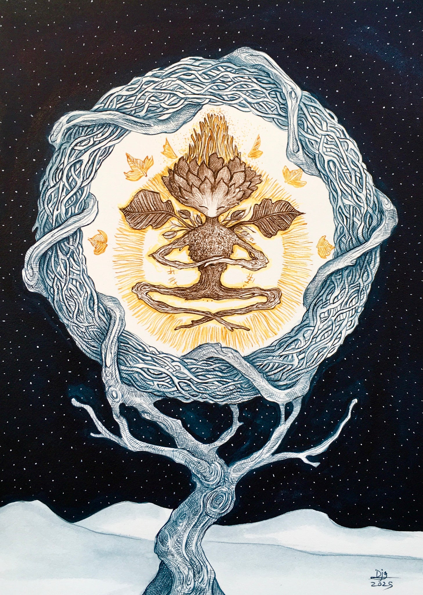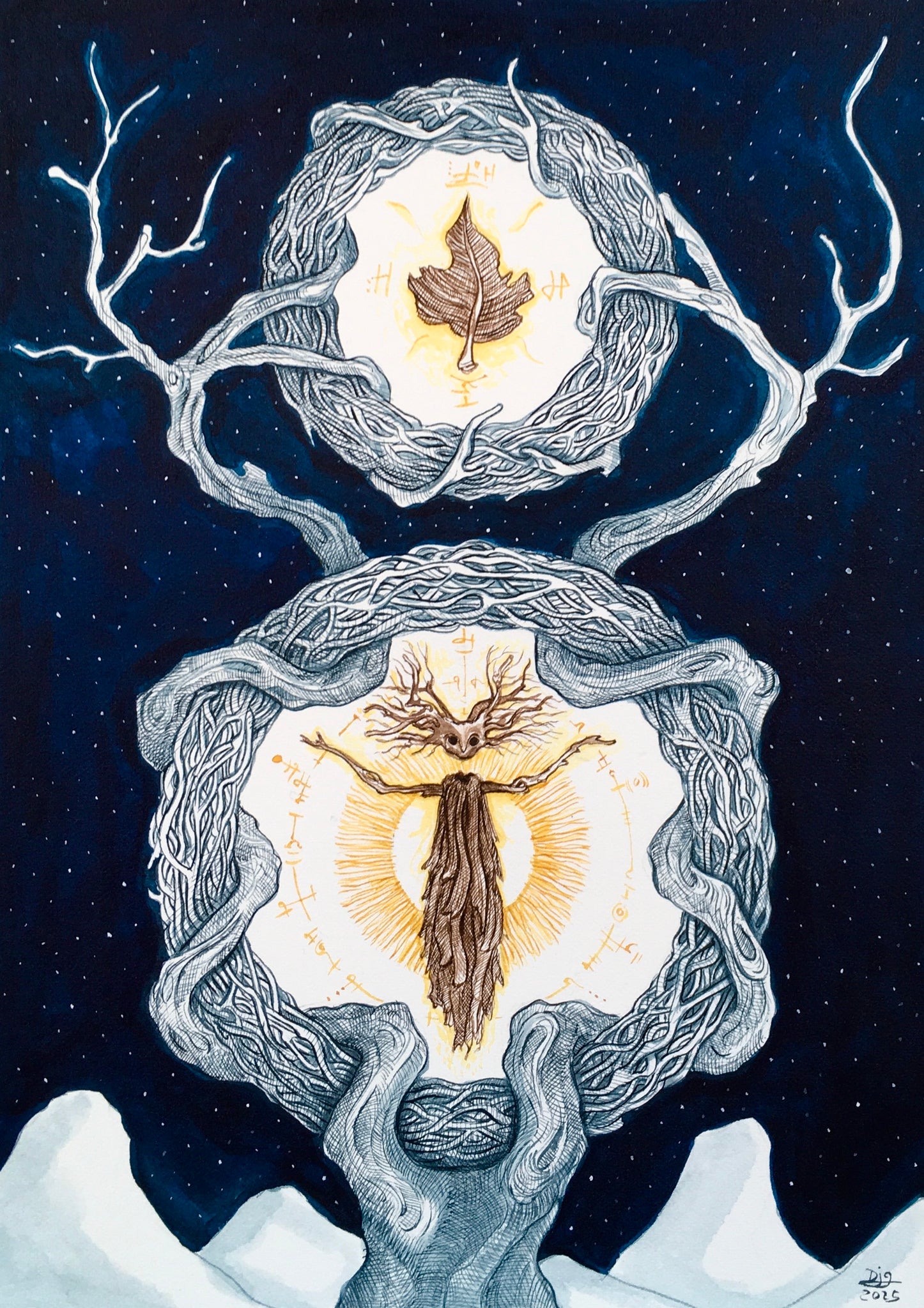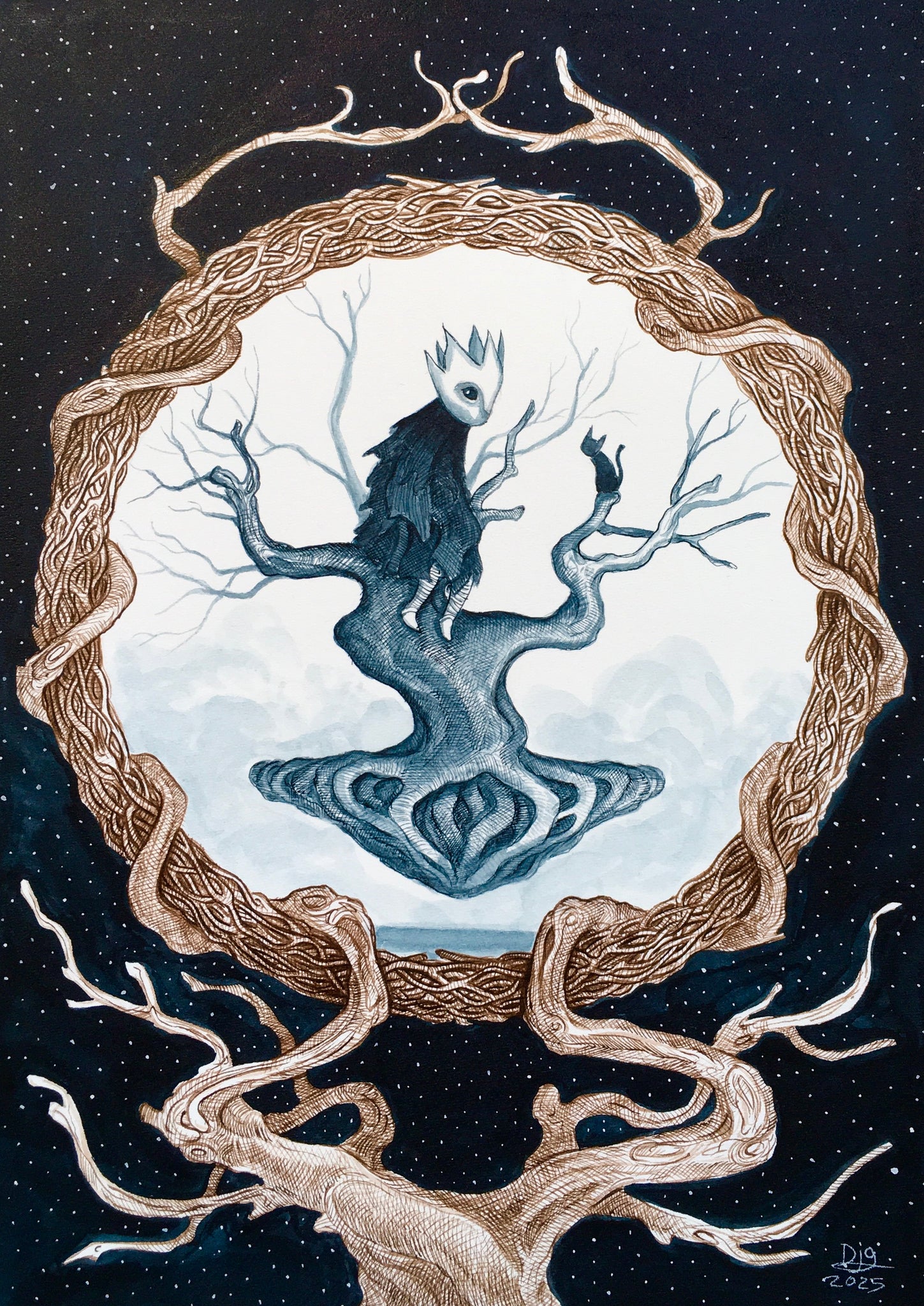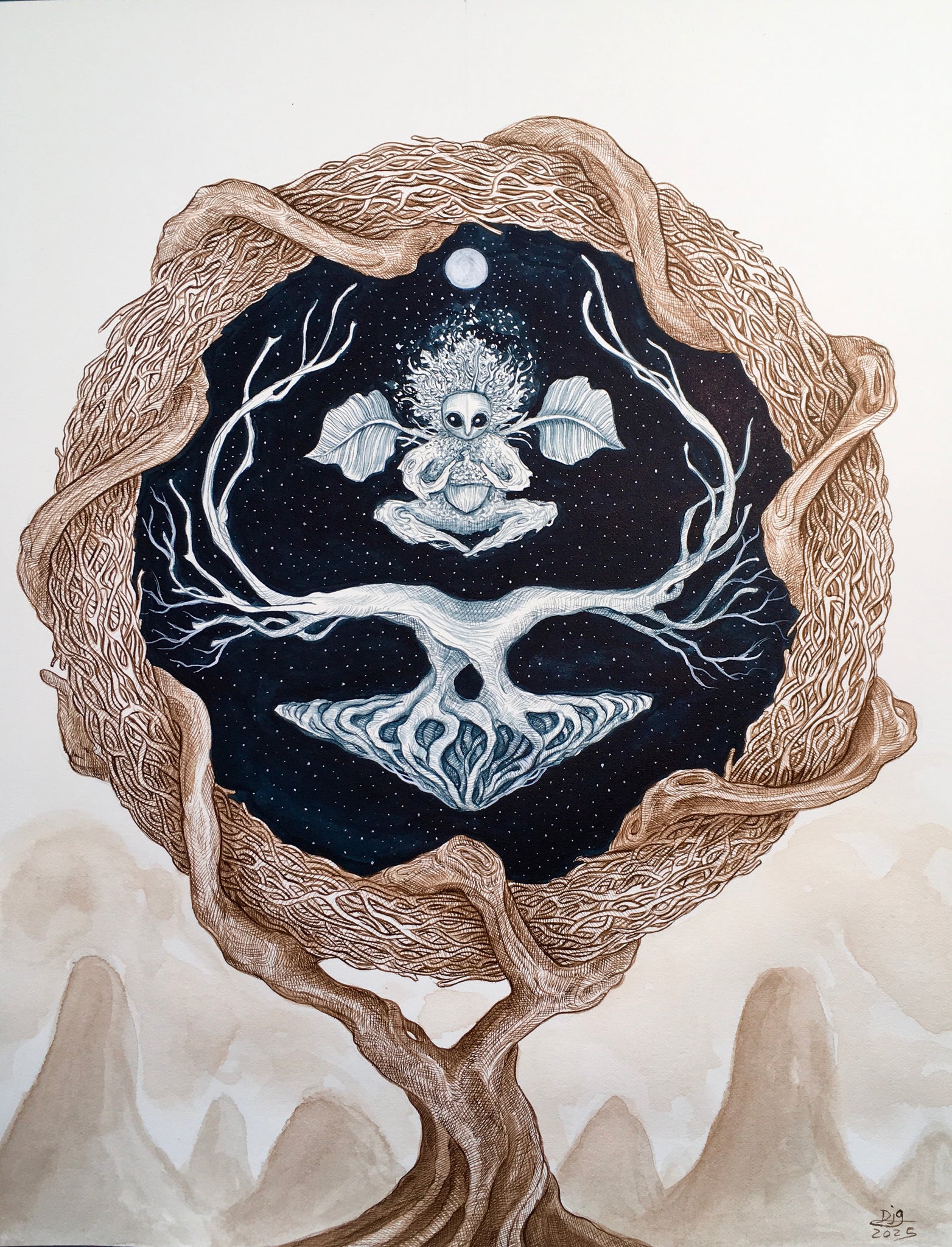 The artworks are in many different sizes and a wide array of mediums ranging from ink, gouache, color pencil, pastels and even salt. This project is a means for the artist to play around and experiment with new ways of working.