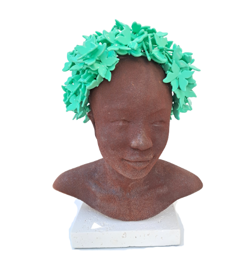 Medium: Ecostone sculpture + epoxy coated green butterflies -2025